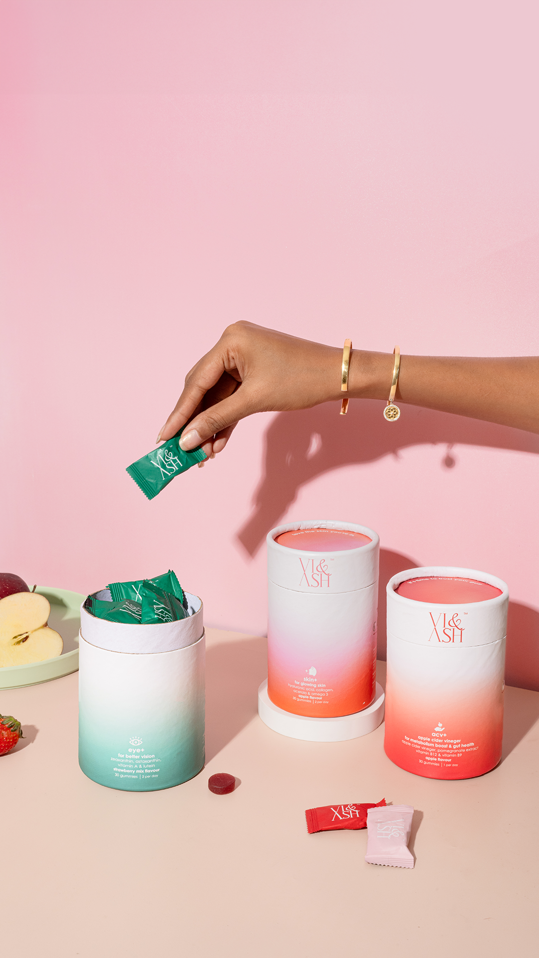 Experience skin transformation in every bite / Glow from within all day every day with our skin+ gummies. A unique blend of clean, best-in-class ingredients that work together to give you healthy, naturally glowing skin from within.